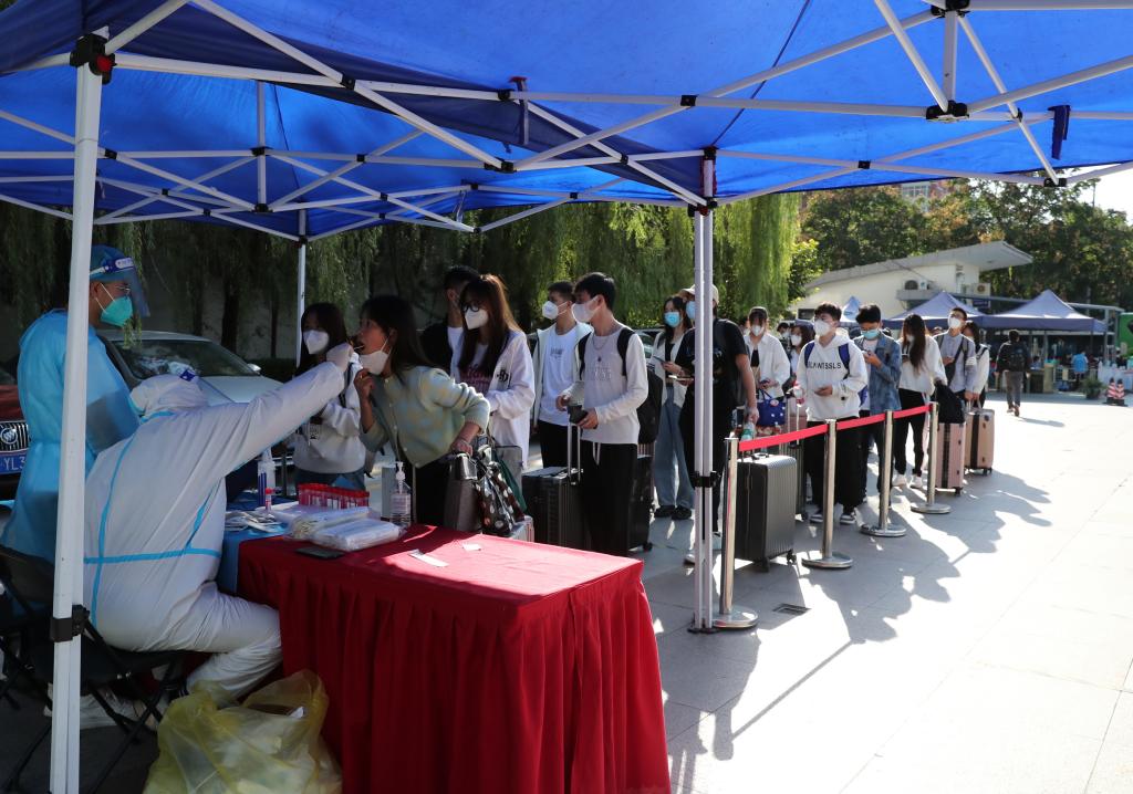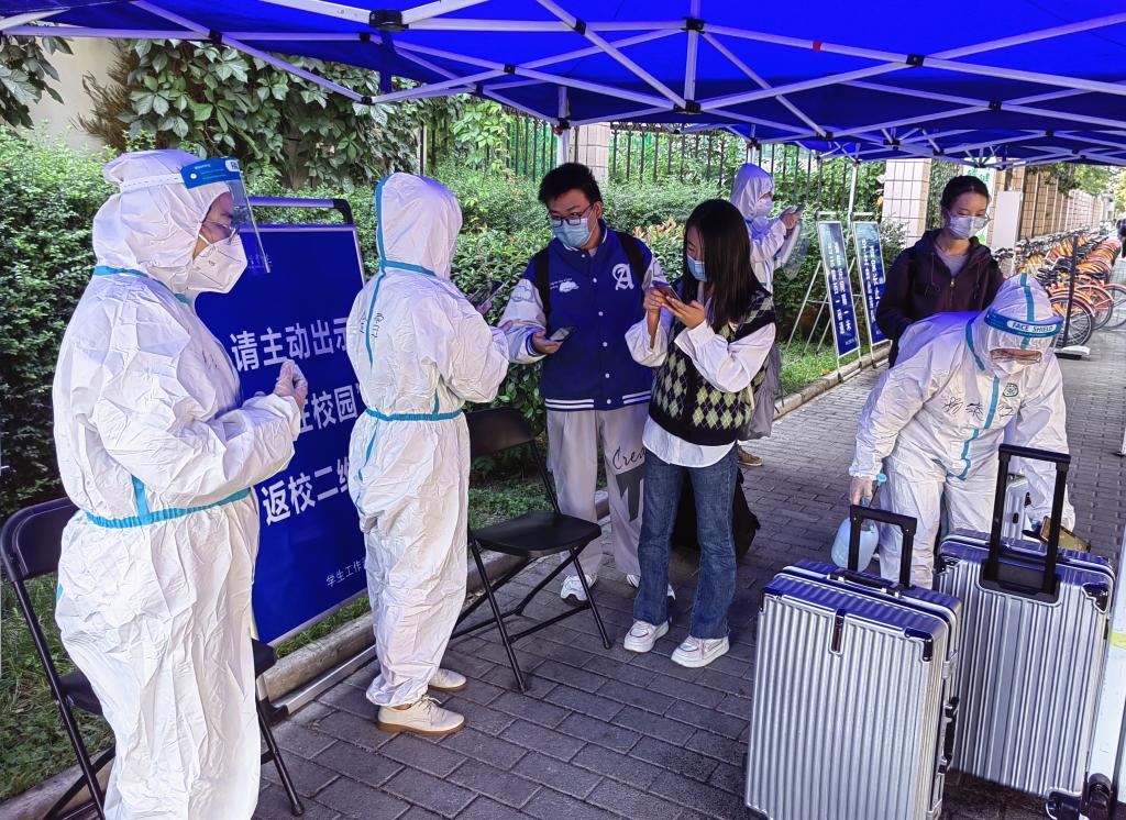 学校严格按照疫情防控要求逐一查验每位学生的“陕西一码通”及“通信大数据行程卡”,48小时核酸检测阴性证明及“我在校园”返校二维码,进行体温测量和行李消杀后方可入校。按照相关要求将对返校学生进行多轮核酸检测及静态管理工作,学校将全力做好返校学生的服务保障工作,确保安全稳定。(文/学生工作部(处) 高攀 图/相关单位)