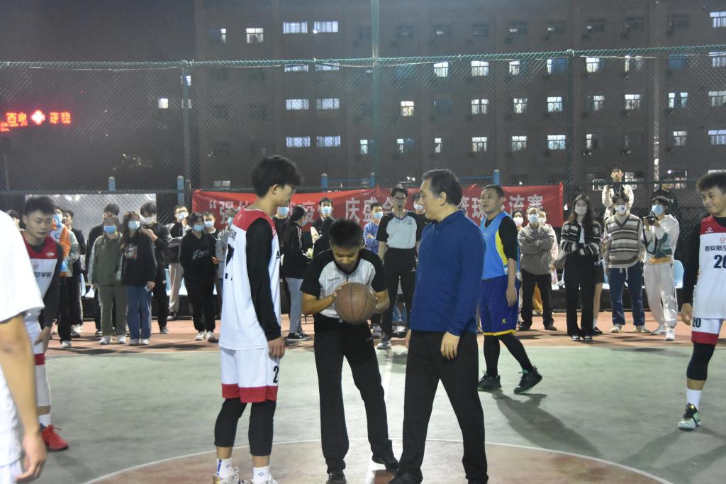 为庆祝党的二十大胜利召开,活跃封闭管理期间师生校园生活,释放工作和学习压力,提振抗疫信心,11月1日晚,由学生工作部、校工会主办,教职工篮协承办的“强体魄,战疫情,庆盛会”师生篮球交流赛首场比赛在莲湖校区灯光球场成功举办。党委副书记韩明军,党委组织部、学生工作部、教务处、保卫处、后勤保障处、图书馆、网络信息中心等部门教职工代表和校学生篮球队进行了同场竞技。
