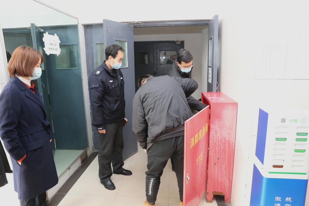 检查组一行先后深入到教学楼、科教楼、图书馆、校办工厂、实验楼、学生公寓、校内超市、学生餐厅、菜鸟驿站等区域,仔细检查了消防设施设备、消防安全疏散通道以及灭火器、消防喷淋系统的安放和落实情况,认真听取了相关人员的工作汇报。