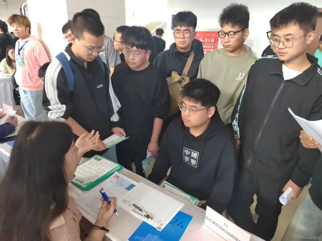 招聘会现场气氛热烈、秩序井然,毕业生热情高涨,积极投递简历,了解企业发展前景和岗位需求,与企业招聘人员深入交流。副校长宁永录与泰州市人力资源和社会保障局钱筱湄局长、泰州市人才服务中心主任陈文根、靖江市人力资源和社会保障局书记朱建忠就强化政校企合作进行了座谈。多家企业在招聘会上与学生初步达成了就业意向。